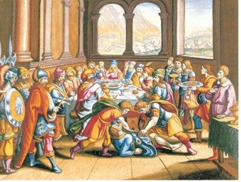 처음에 초청 받은 사람들은 유대인들이다. 그러나 그들은 왕의 초청을 반기지도 않았고 오히려 소식을 전하는 많은 종들을 죽였으며 심지어 왕의 아들 까지 죽였다.