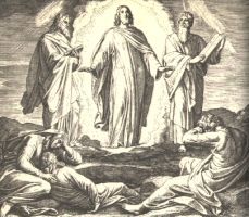 이런 말씀을 하신 뒤 8일쯤 지나 예수께서는 베드로와 요한과 야고보를 데리고 기도하러 산에 올라가셨습니다. 예수께서는 기도하는 동안 얼굴 모습이 변하셨고 옷이 하얗게 빛났습니다. 그런데 갑자기 두 사람이 나타나 예수와 더불어 말을 하고 있었습니다.