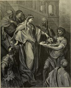그의 어머니가 딸에게 " 세례 요한의 머리를 달라고 해라." 소녀가 곧장 달려가서 왕에게 "지금 곧 세례 요한의 머리를 쟁반에 담아 제게 주십시오."