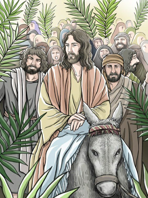 “호산나! 복이 있으리로다! 주의 이름으로 오시는 분이여!” “복이 있도다! 다가오는 우리 조상 다윗의 나라여!” “지극히 높은 곳에서 호산나!”