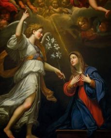 천사가 마리아에게 가서 말했습니다. “기뻐하여라. 은혜를 입은 자여, 주께서 너와 함께하신다.” 천사의 말에 마리아는 당황하며 깜짝 놀라 ‘이게 무슨 인사인가’ 하고 생각했습니다.