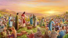 예수께서는 빵 다섯 개와 물고기 두 마리를 손에 들고 하늘을 우러러 감사기도를 하셨습니다. 그리고는 그것을 떼어 제자들에게 주면서 사람들 앞에 갖다 놓게 했습니다. 사람들이 모두 배불리 먹었습니다. 그리고 제자들이 남은 조각들을 거두어 보니 12바구니에 가득 찼습니다.
