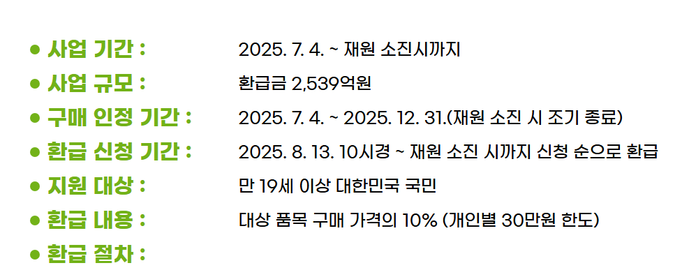 → 2025년 7월 4일 이후에 구매한 제품부터 환급이 가능합니다. 구매일자는 거래내역서 또는 영수증에 기재된 날짜를 기준으로 합니다.